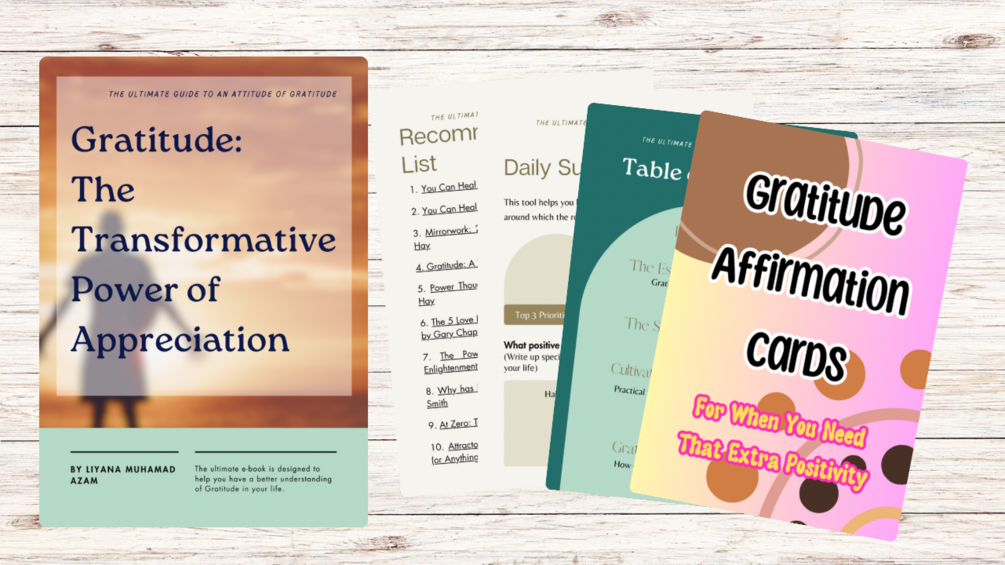 You'll get the Gratitude eBook, Workbook, and a set of 90 gratitude affirmation Cards.